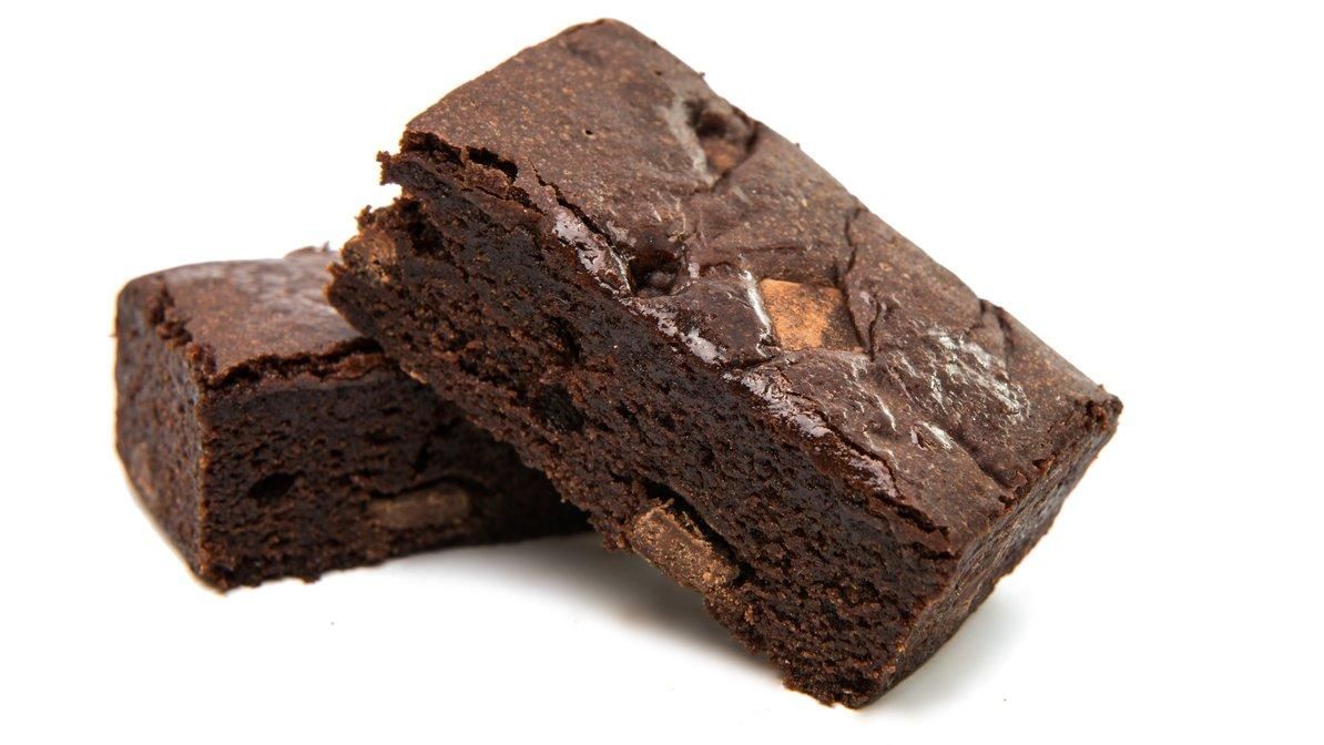 Rich, dense chocolate brownie with a fudgy center and a slightly crisp top