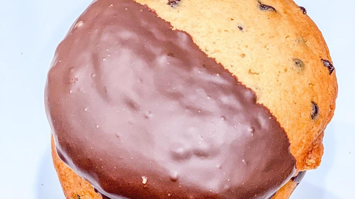 Half-dipped in rich chocolate, these cookies feature a soft, golden-brown base embedded with chocolate chips